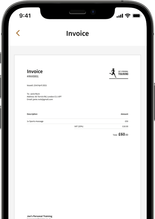 When you send a payment request, Pay-Me automatically issues an invoice with your business details and logo.